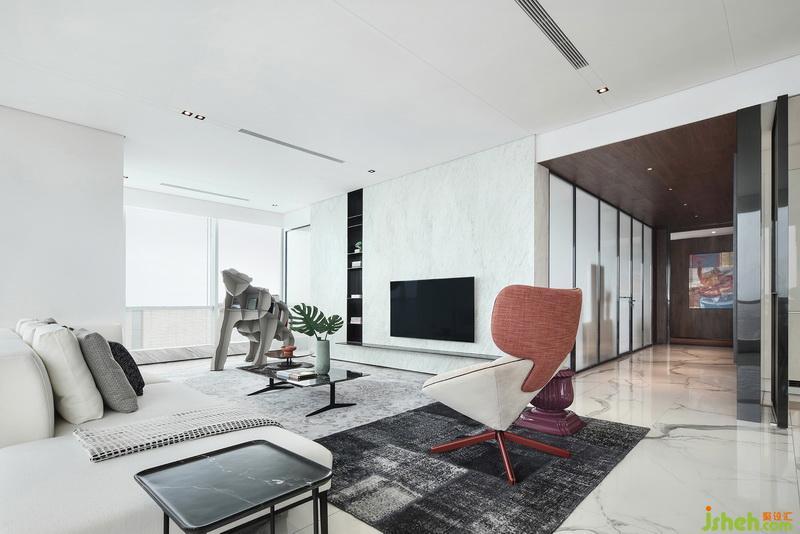 H戶(hù)型以極簡(jiǎn)白為基調(diào),在理性與時(shí)髦兼具的風(fēng)格下,跳脫出藝術(shù)般的大膽前衛(wèi),靈動(dòng)又不乏舒適,呈現(xiàn)極致美學(xué)。同時(shí)以穿透性手法運(yùn)用、轉(zhuǎn)換黑白材料的跳脫和碰撞,在清凈中探索空間的界限,耐人尋味。