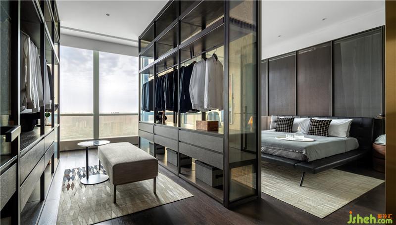 過道動線有序串聯(lián)客餐廳公共區(qū)域與私密臥室,在客餐廳盡頭兩端可步入主臥套間與次臥套間,客臥則與主臥相鄰,合理的動線關(guān)系打造連貫的空間尺度。