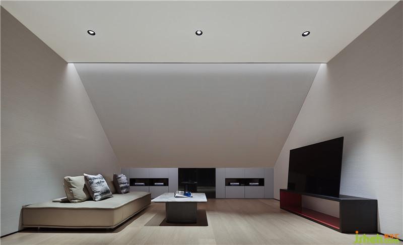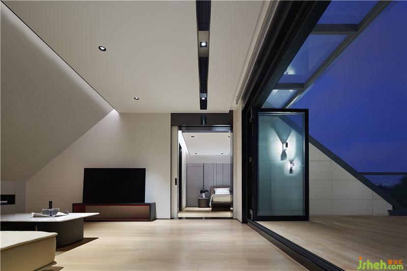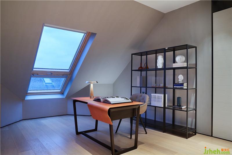 三樓設(shè)有書房、客廳、客臥、露臺及榻榻米等區(qū)域,注重賦予其更多靈活可塑性,也為未來生活的后續(xù)需求留有發(fā)揮余地。露臺與客廳開放互聯(lián),切面視覺讓空間框架彰顯趣味。斜頂開設(shè)天窗,以柔和方式留住適宜的照度,使書房更顯寧靜、祥和之氣。