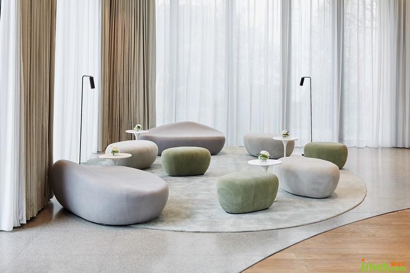 洽談區(qū)內(nèi)材質(zhì)、造型、色澤在平衡的搭配中烘托出開放隨性的氣氛,柔軟舒適的沙發(fā)可組合變幻出不同的體態(tài),和諧與親密則是始終不變的內(nèi)涵。這背后折射出設(shè)計(jì)師對溝通場景的尺度把控,也兼顧了洽談時(shí)兒童可在一旁玩樂活動的貼心思索。