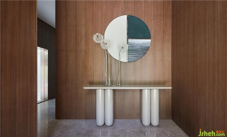 獨(dú)立的玄關(guān),以個性端景臺作為承載,開啟歸家的儀式感。純粹克制的視覺中,又不乏含蓄的肌理變化。于此間也有整個空間中形、色、質(zhì)設(shè)計(jì)要素的映射與縮影。