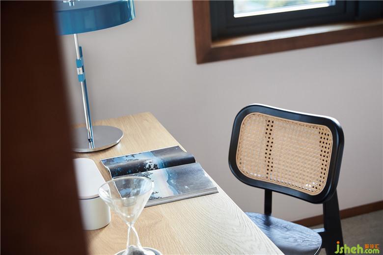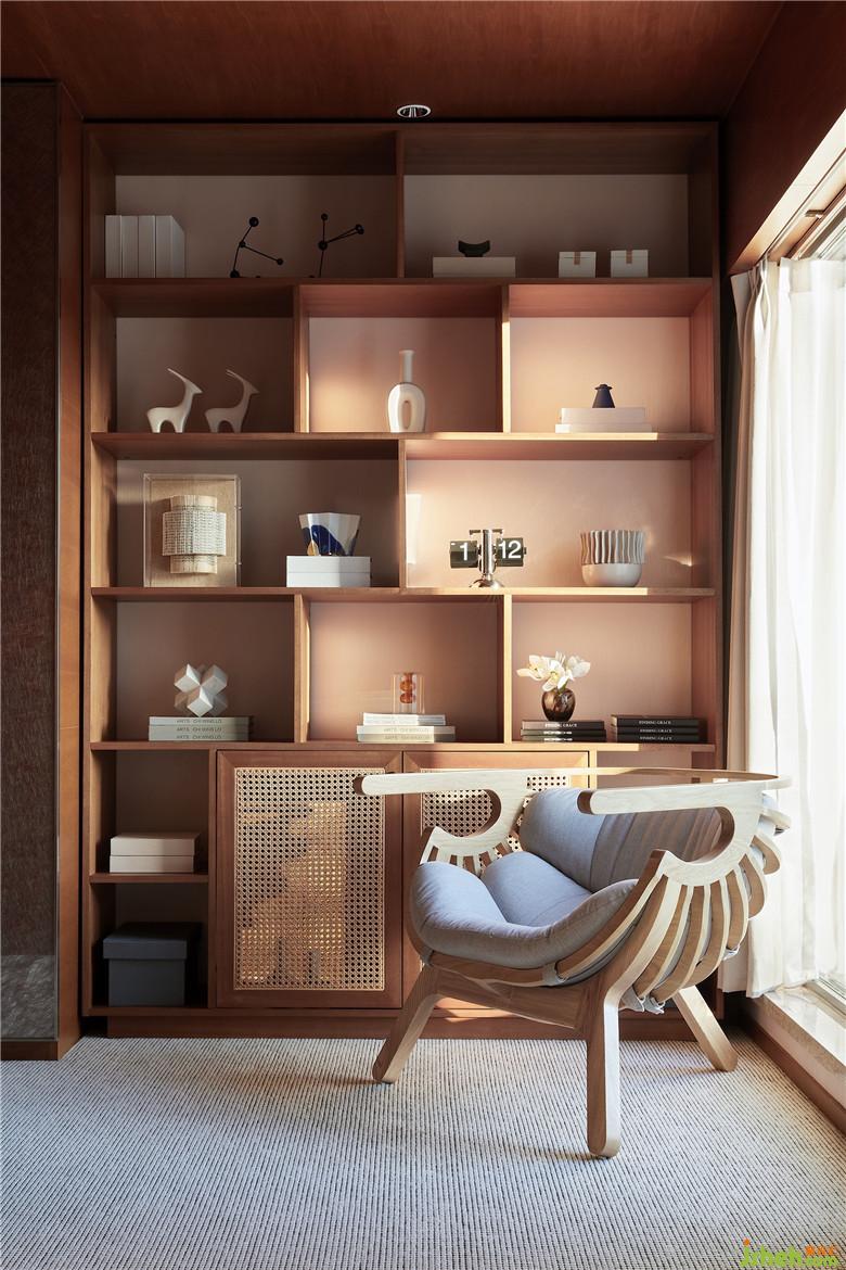 學習不再是苦悶的體驗,孩子房入口處的端景由原先一把椅子、一幅畫的單調區(qū)域擴展成了一個舒緩的閱讀空間。慵懶的午后半躺在造型感顯著、舒適度絕佳的單椅上,思緒則遨游在書海中,“學”也在不知不覺中進行著。