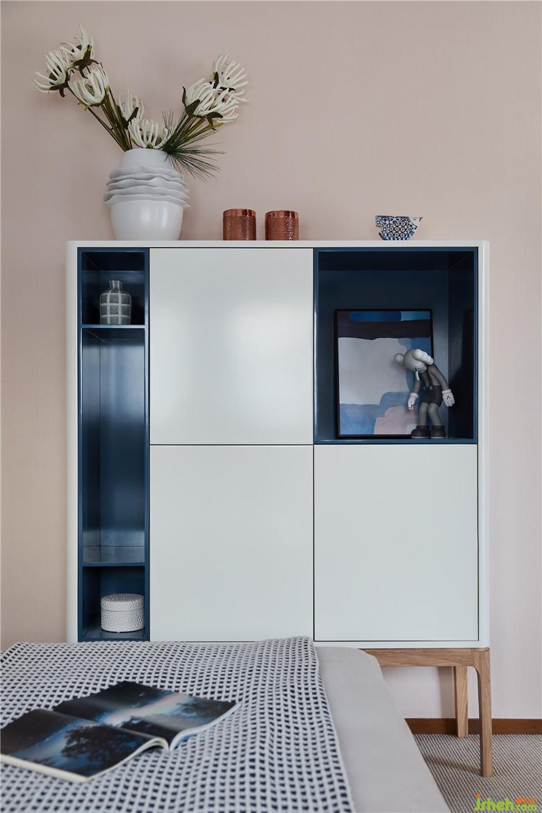 臥室同樣蔓延著清新的氣息,以素色的壁紙取代床背的大面鏡子,剔除繁復的裝飾,用淡雅的藍與生機的綠作點綴,平和靜謐與活潑趣味共存,亦是對孩童心性的陶冶。