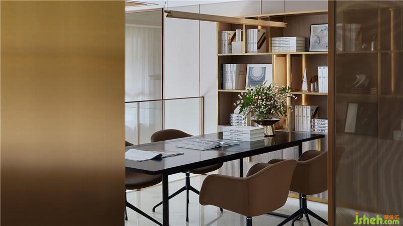 于一樓架設(shè)夾層,合理規(guī)劃老板及員工的辦公區(qū),進一步滿足其商業(yè)性需求。摒棄一切復雜、花哨與繁冗,結(jié)合夾絲玻璃的通透與貫穿始終的線條感,展現(xiàn)時尚不失精細、簡約但不簡單的海歸精英辦公室。售樓處設(shè)計