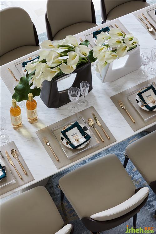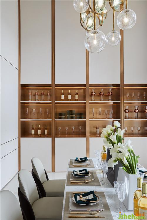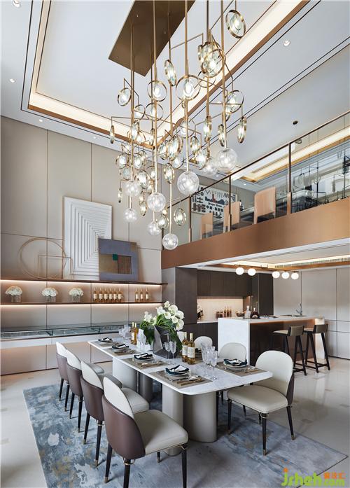 餐廳處的挑空極具廣闊的視覺效果,縱橫兩端的延展給予空間豐富層次,墻面的展陳區(qū)則帶來幾分新潮與藝術(shù)美,低調(diào)奢華之感呼之欲出。