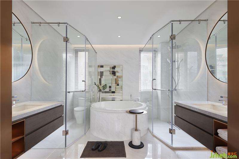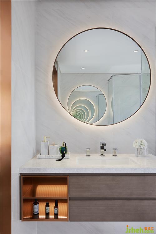 主衛(wèi)遵循對稱手法,矩形體塊與圓弧形態(tài)有機(jī)搭配,其背后則是依據(jù)人在場景中的功用及感受來排布。加上對細(xì)節(jié)、造型、燈光的謹(jǐn)慎把握,共同演繹大氣格調(diào)。售樓處設(shè)計(jì)