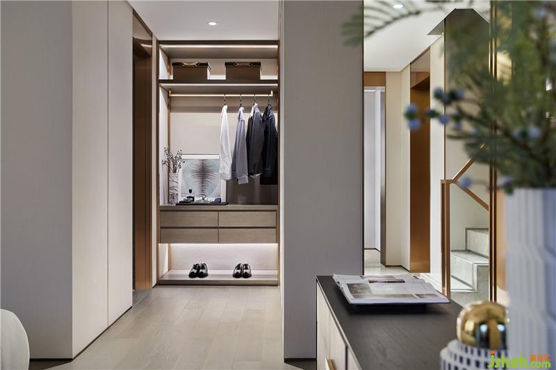套間一隅設(shè)獨(dú)立衣帽間,并嵌入燈帶為其添上獨(dú)特的情調(diào)。這既是空間的合理化利用和居者需求的完善,亦是生活品質(zhì)的縮影與細(xì)節(jié)的極致追求。