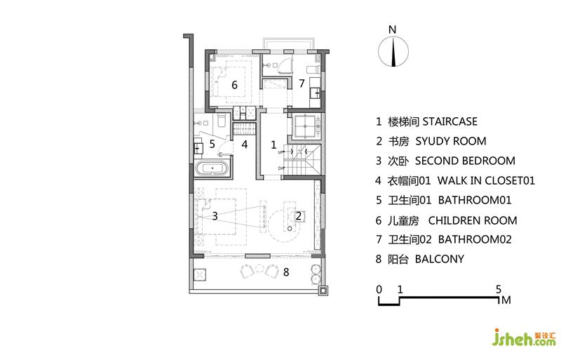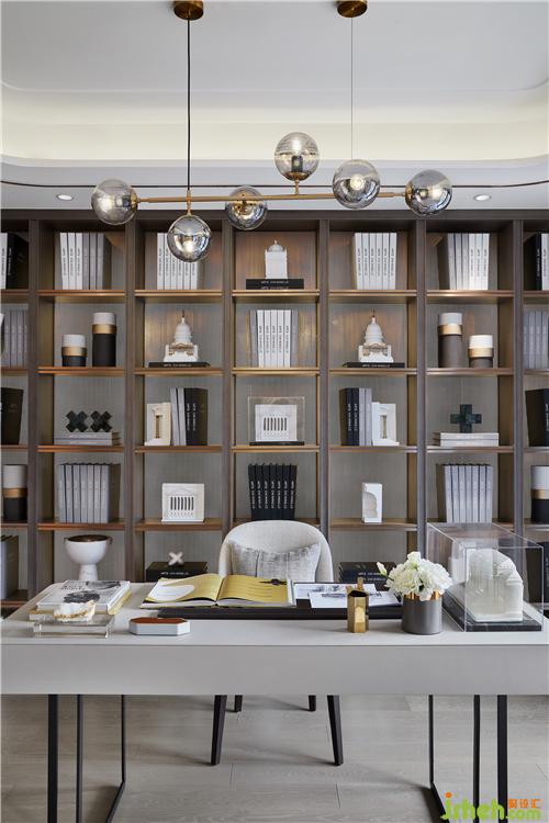 開放式書房與睡眠區(qū)相望,融合了現(xiàn)代人的功用性與審美需求,并予以其更深的自由度與靈活性。多功能書架,在一脈相承的設(shè)計(jì)理念中,呈現(xiàn)充沛的線條律動(dòng),渲染寬廣的精神境域,盡顯高級細(xì)致之美。