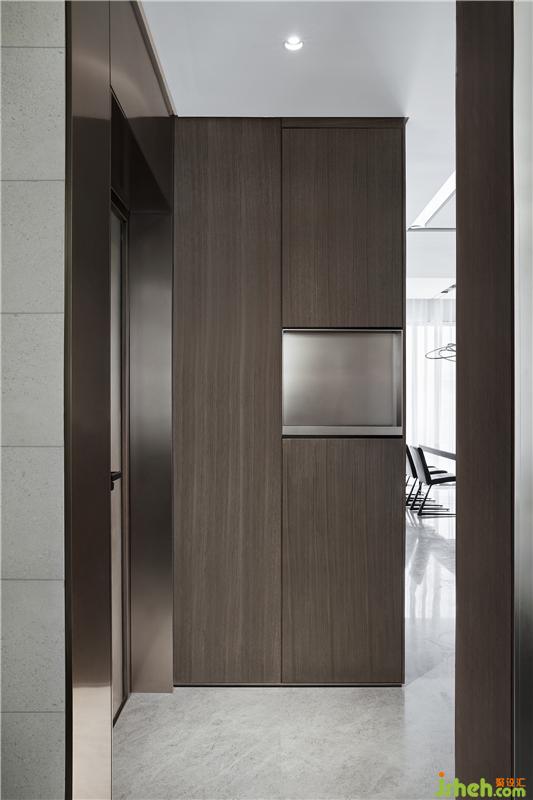 玄關(guān)是空間的起始筆觸,設(shè)計師以大片木飾面鋪就,平和輕松之感頓顯,在閑適的穿梭中便可邂逅轉(zhuǎn)角的溫情,仿若薄霧籠罩下不經(jīng)意透露的那點山間韻味。樣板房設(shè)計