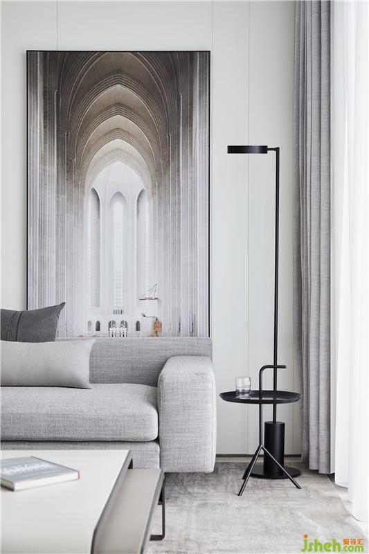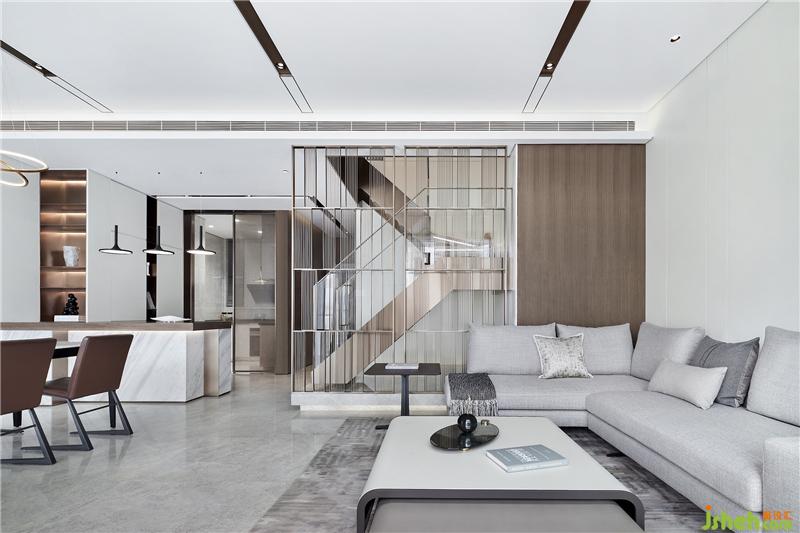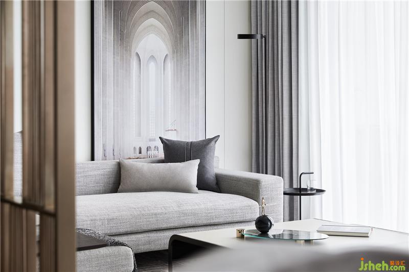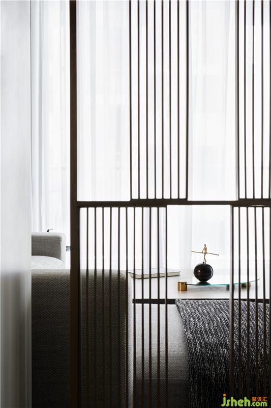 陽光透過窗紗,光線點點落于柔軟布料,這一瞬的客廳仿佛成了永恒。設(shè)計師摒棄虛張聲勢,舍了繁華堆砌,去除多余的墻體,借由金屬格柵的虛實效果,連接多個區(qū)域互通對話,簡潔的線條,溫和的色調(diào),安寧地詮釋出靜謐輕奢的格調(diào)。
