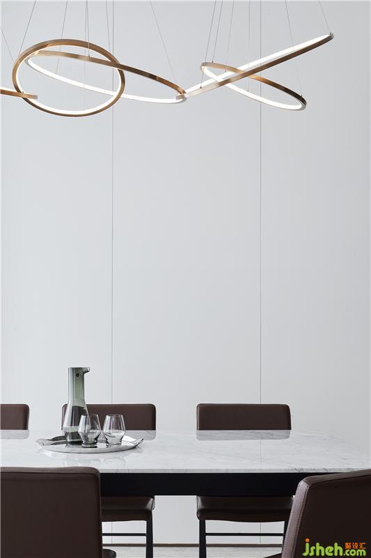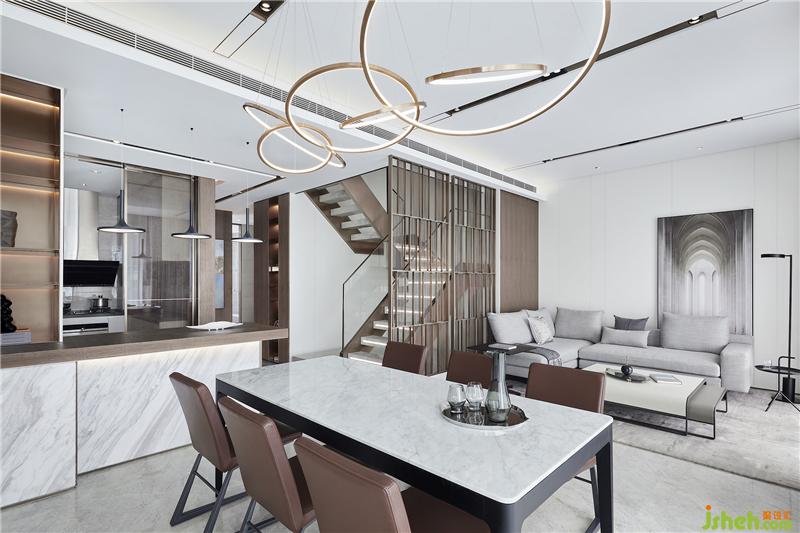 廚房、吧臺、餐廳自由的形式,讓尺寸感、舒適度以及便利性進一步提升,烤漆板與金屬貫穿始終,加由視覺和觸覺上的多元碰撞、對比,映襯一種微妙的開放與互動。