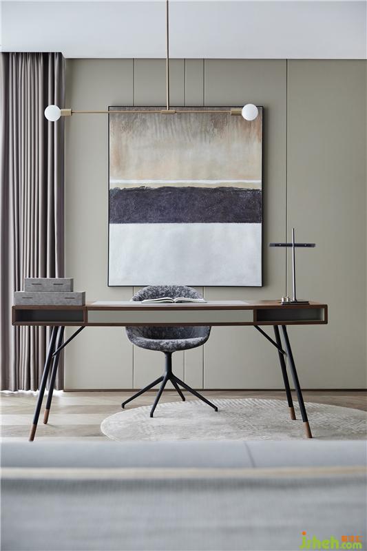 書(shū)房、臥室兩相對(duì)望,延續(xù)了克制的設(shè)計(jì)手法,按照生活場(chǎng)景與動(dòng)線(xiàn)邏輯進(jìn)行重塑,兼容并蓄,讓居者在平靜與自由的氛圍得以休憩,同時(shí)又不失簡(jiǎn)練與溫度。L型的落地窗又極具趣味,連通戶(hù)外陽(yáng)臺(tái),成為室內(nèi)向戶(hù)外延伸的媒介。