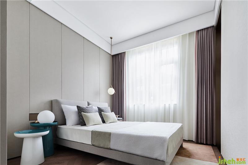 低飽和度的色彩,奠定了次臥細(xì)膩舒緩的基調(diào),透亮、潔凈又不乏活力流轉(zhuǎn)。樣板房設(shè)計(jì)