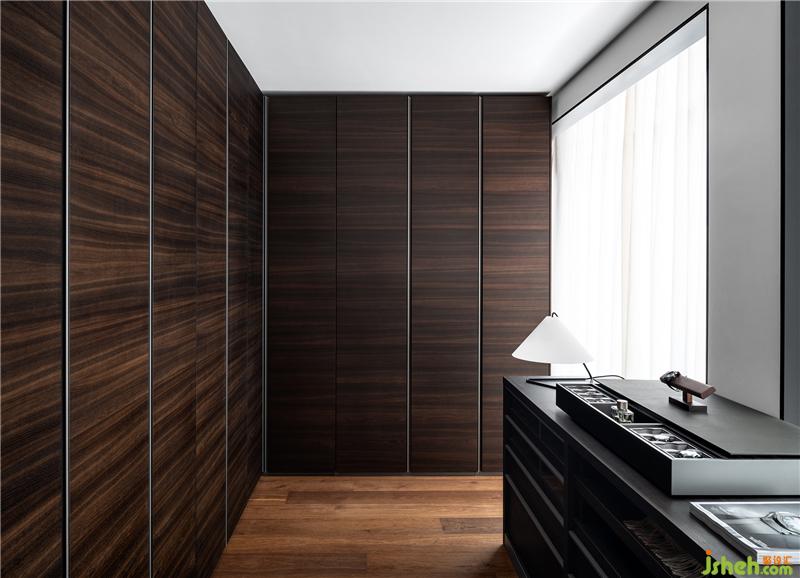 男女主人的衣帽間彼此相鄰,又因動線的合理設置保證了使用上的互不干擾。業(yè)主品味及工藝本身的魅力皆在細致的劃分中悄然流露。密室作為豪宅不可或缺的一項配置,設計師亦心思靈動,將其巧妙融入進來。