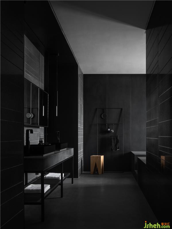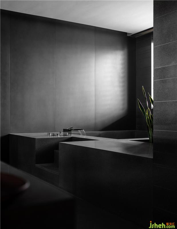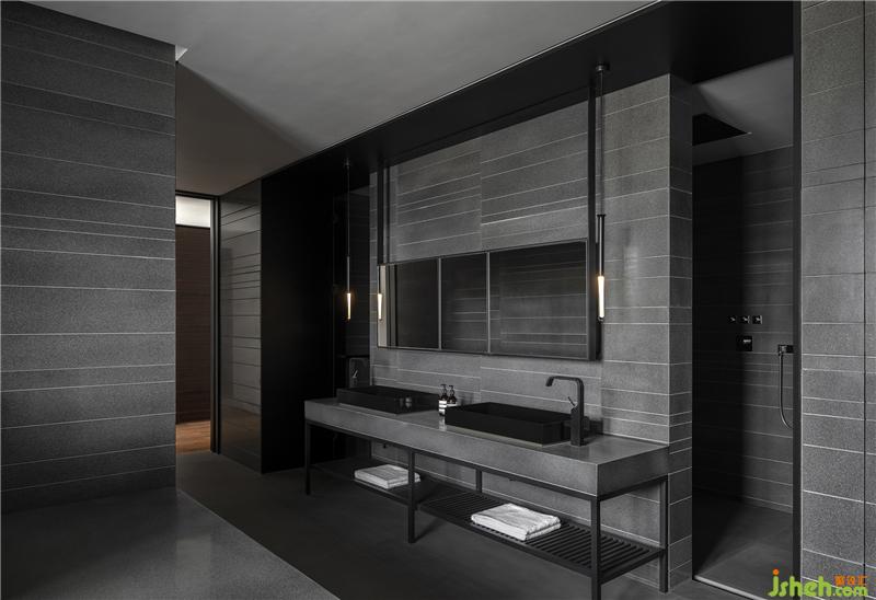 偌大的主衛(wèi)內(nèi),設計師精準推敲比例尺度,充分照顧每一寸的室內(nèi)感受、構圖審美、細節(jié)質(zhì)感等,通過石材清晰的線條、隱約的紋理,籠罩出一種包容之感,暗黑中的優(yōu)雅,愈發(fā)顯得意味悠長。