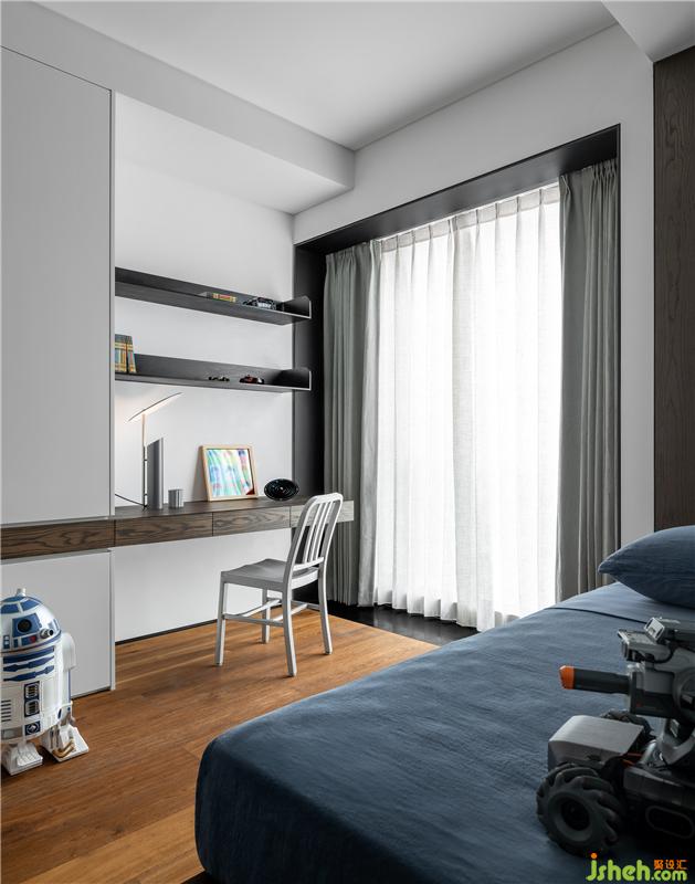 起居室另一頭則是兩位小主人的獨立臥室,依照兄弟倆的愛好和需求,既有共性之處,又各具特色。其中一間臥室內(nèi)特別定制的上下床,也為滿足兄弟倆一起玩耍、陪伴入眠創(chuàng)造了條件。