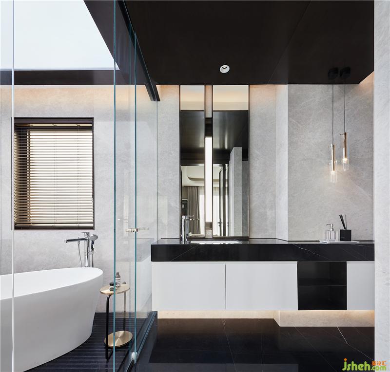 玻璃天井圍合出主衛(wèi)浴室,以上下通透的形式,加強(qiáng)了室內(nèi)外的交融與對(duì)話(huà),渲染出日照光影、夜觀(guān)星空的愜意狀態(tài),顯得寧?kù)o而美好。