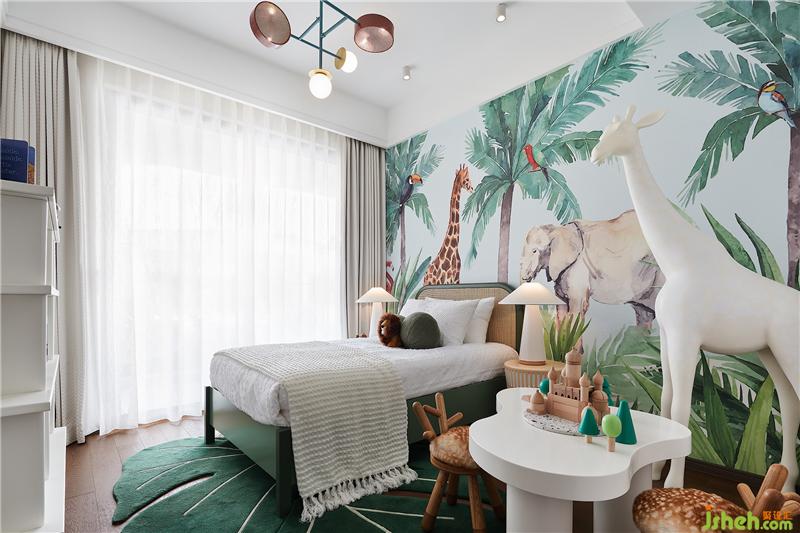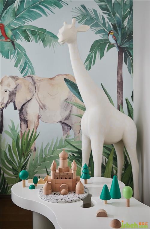 孩童對于自然的想象與好奇是無止境的,兒童房以“森林動物”為主題,通過深與淺的對比色調(diào),拉伸層次的同時,也凸顯生動與活潑之感,在有限的環(huán)境內(nèi)迸發(fā)出無限可能。