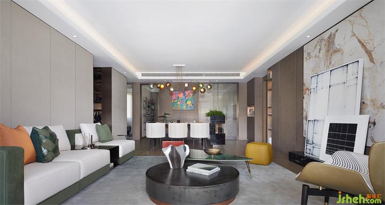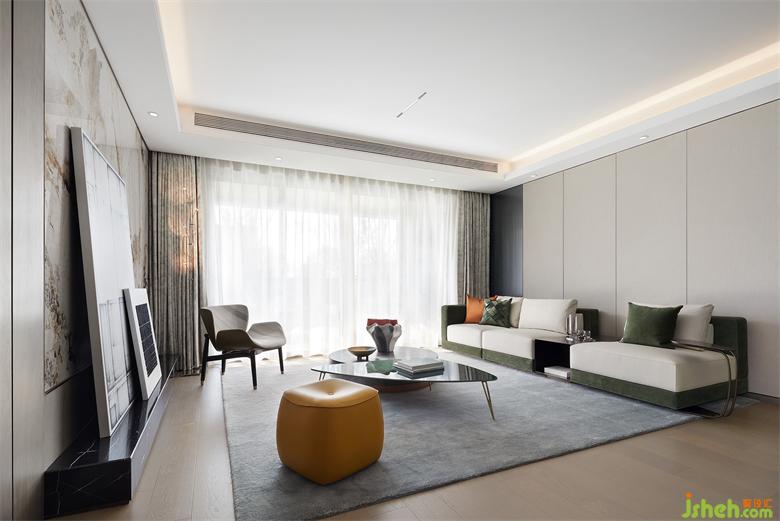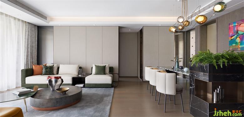 “不同的生活態(tài)度造就不同的空間模式,不同的情境營造也能引導不同的生活方式。生機綠意是都市居所中珍稀的,格調美學也是為人所摯愛的,我們以此為切入點,用現代國際風范作基調,于綠野之境構建人、自然、藝術品的共生對話,在感性與理性交融間愜意遨游。”設計師方磊娓娓道來其主旨意圖。