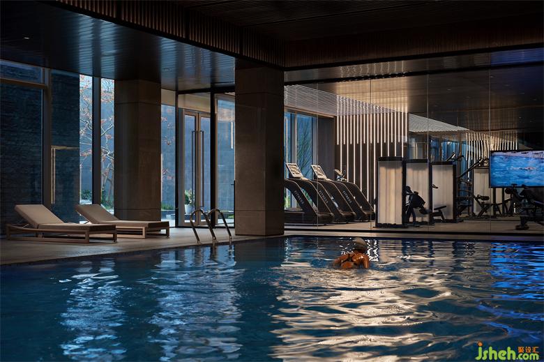 美不只從形體里產生,更重要的是還作用于人的感官、知覺與情感。泳池頂面與立面的燈光排布強調對仗與秩序,并以框景手法打造沉靜式觀賞區(qū),讓人于愜意暢游中,體會純粹、放松的心境。