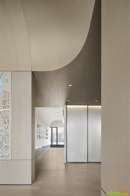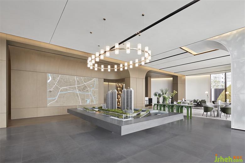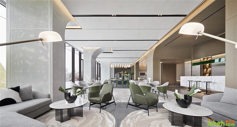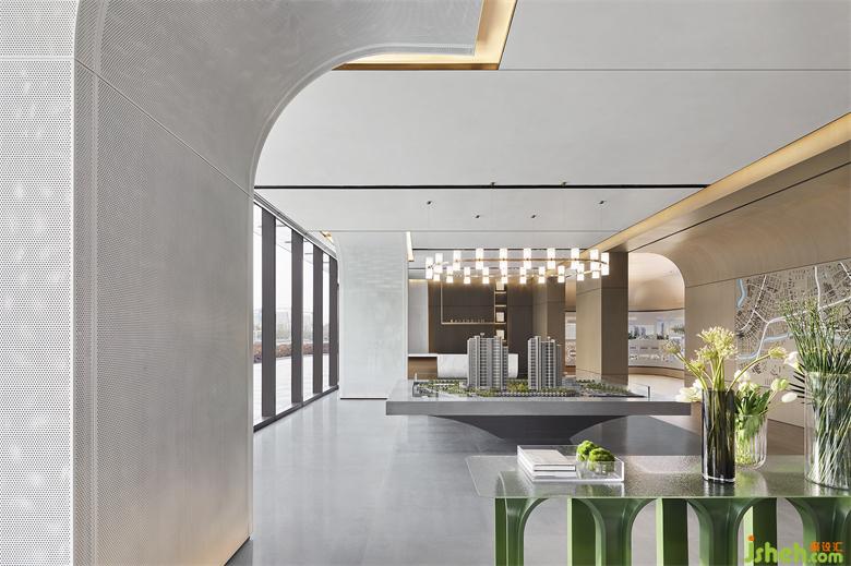 訪客視線隨著多樣元素的層疊錯落,輕松、舒適的洽談區(qū)域便呈現(xiàn)在眼前。得益于對透視法則的精準把控,多種落座形式的布局,尺度感與秩序性依舊合理且清晰。南京售樓處設計臨窗處,沙發(fā)、飾品的形狀,同樣飽含深意,與弧形的建筑外立面巧妙關(guān)聯(lián)響應。