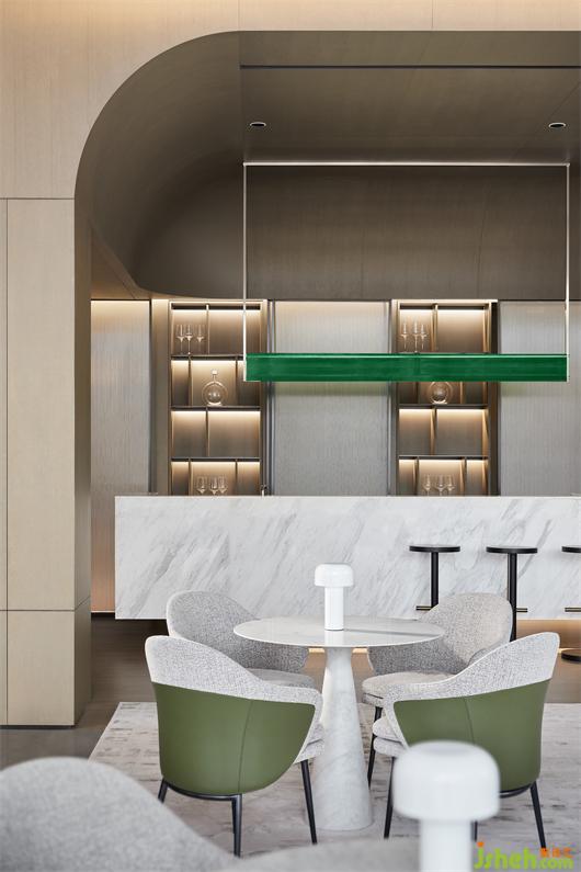 盎然生機與都市人文相遇,精雕細琢的水吧區(qū)隨即而出。延續(xù)了一貫的設計手法,干練的線條與規(guī)整的廓形構(gòu)成微妙平衡。玻璃移門的開合變化,也賦予多元的表情。