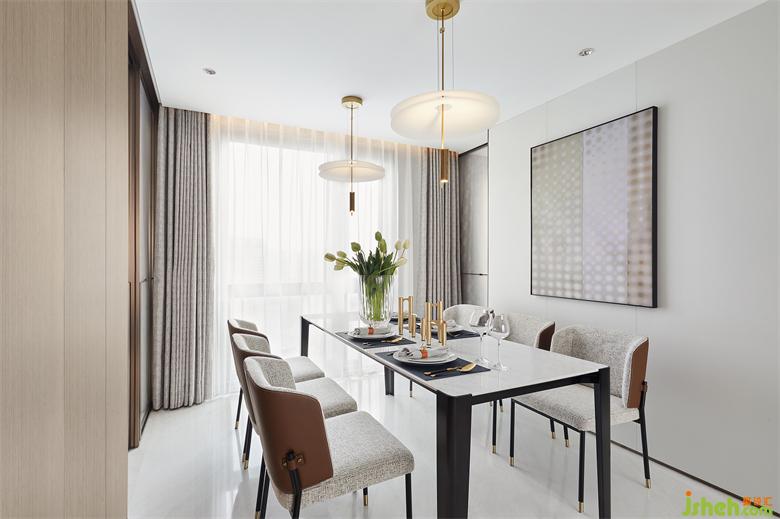 歸家,本該松弛且融洽。南京樣板間設(shè)計(jì)客餐廳一體開放式布局,簡(jiǎn)單純粹且質(zhì)感十足,讓都市的俊朗風(fēng)貌躍然流露。