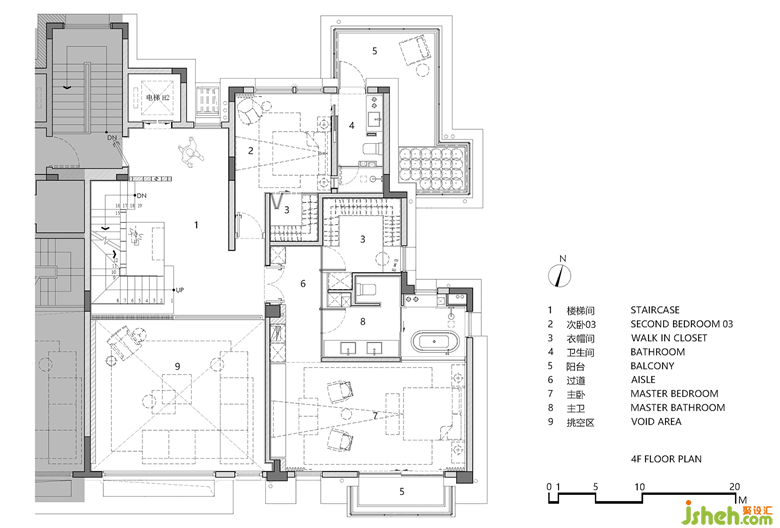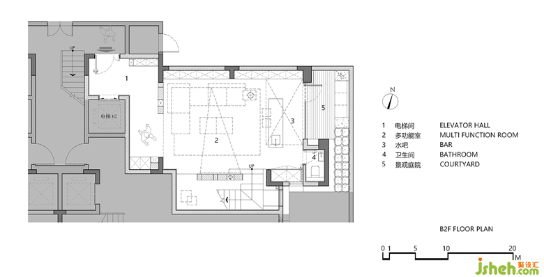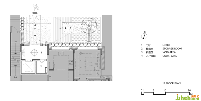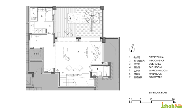 地下層內(nèi)庭院自成一方靜謐天地,素雅干練的用材與水景園林交相輝映,滌蕩開無盡的人文雅趣。在藝術(shù)的構(gòu)造下,建筑本身與周圍環(huán)境和諧交融,恍如遁回桃花源,忘卻世間塵與煩。互動(dòng)聯(lián)通中,可謂室內(nèi)戶外,各有風(fēng)韻。