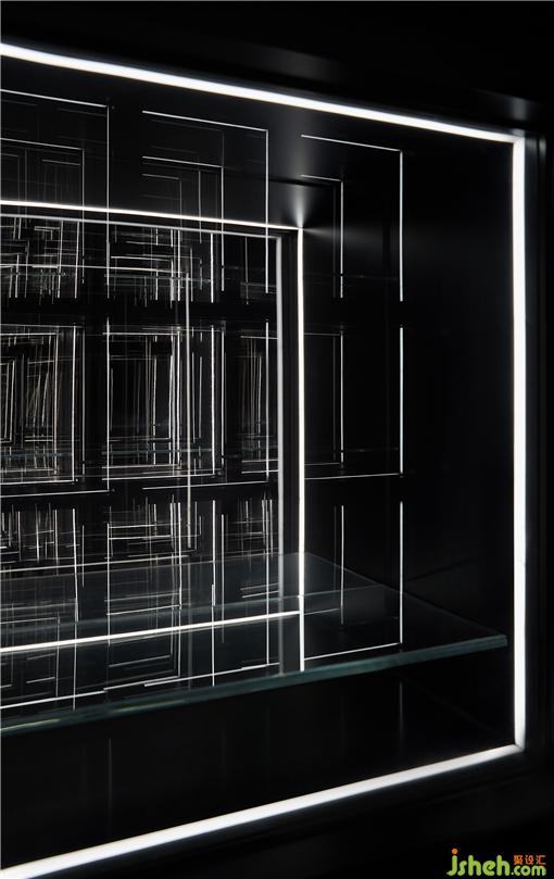 鐵板燒餐廳設(shè)計(jì)逐光而行,展示中庭巧用線條、比例,兩側(cè)置以透明格架對(duì)稱而立,延伸至頂部的不銹鋼鏡面與燈帶的多維交織,似乎令這一領(lǐng)域無限擴(kuò)容,酷炫非凡。