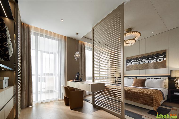 光影隨著木格柵一同律動,相互滲透,虛實結(jié)合,樣板間設(shè)計于精奢的質(zhì)感之中也創(chuàng)造出獨特的疆域。