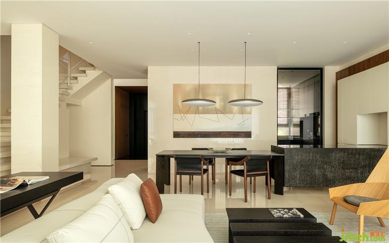 觀其狀,描其境,透過近景玄關(guān)、中景過渡、遠(yuǎn)景客廳的套景手法,由收到放、逐步推引。注入變幻的光影,疊墅設(shè)計(jì)相應(yīng)的抽象情緒也隨著視覺落點(diǎn)而轉(zhuǎn)換,在感性與理性的交融之中豐盈家的內(nèi)核。