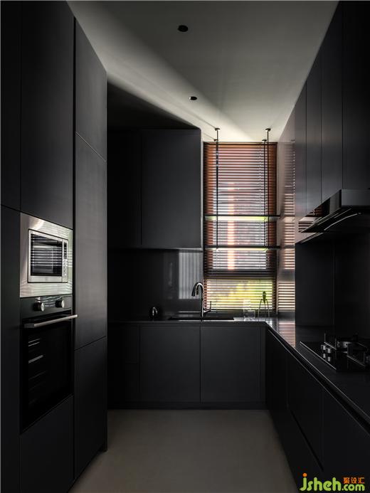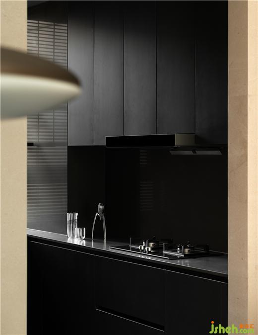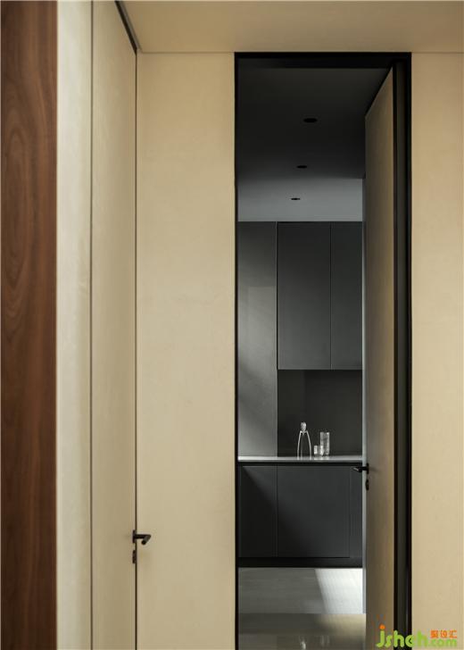 體貼周全的設(shè)計也離不開對廚房內(nèi)外部的關(guān)系梳理。疊墅設(shè)計有效擴(kuò)大原始廚房尺度,并增設(shè)雙通道步入模式,打開與公共區(qū)域的聯(lián)動。于內(nèi)合理排布,提升實(shí)用效率,在暗黑靜謐的調(diào)性里,無聲流淌卓越質(zhì)感。