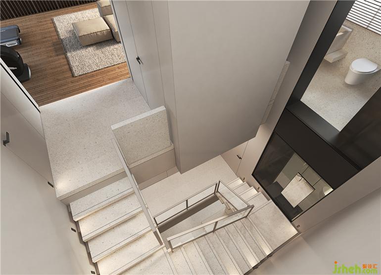 整合原有建筑柱體并加以利用,銜以踏步平臺建構(gòu)起書吧與樓梯,從而塑造相應(yīng)布局。疊墅設(shè)計可提供不同方向的穿梭選擇,又以完整的體量感自成一景。不斷的層疊與解構(gòu),既呈懸浮之意,又精進(jìn)細(xì)部,耐人尋味。