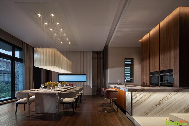 常州天安別墅設(shè)計(jì)以融洽的存在,表達(dá)靜謐自由的本色。將木盒子渾然嵌入,中廚于內(nèi)、西廚于外,這包含著對(duì)每一寸空間的周全應(yīng)用,也是對(duì)功能需求的完善與補(bǔ)充。