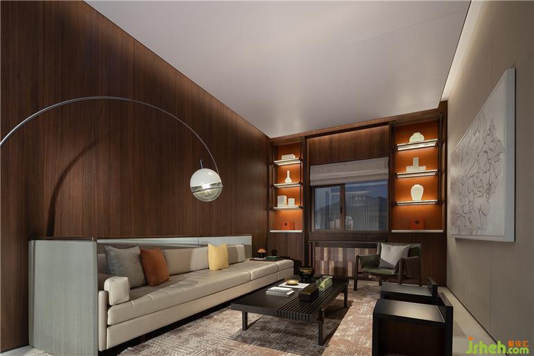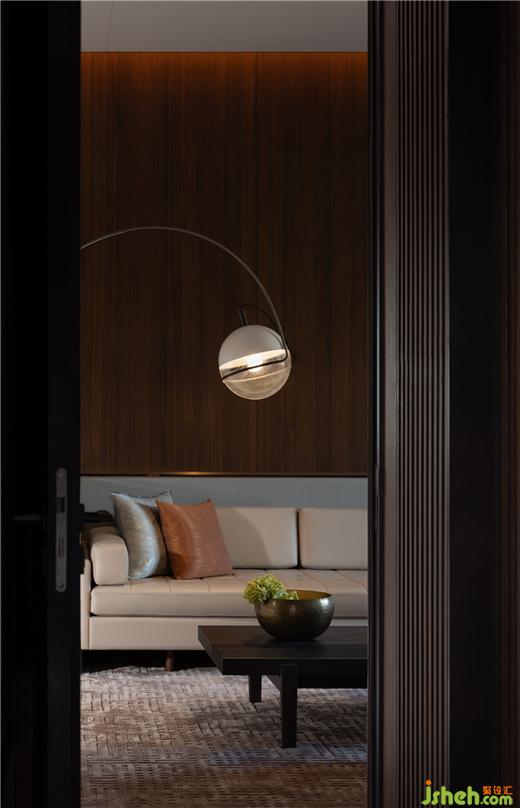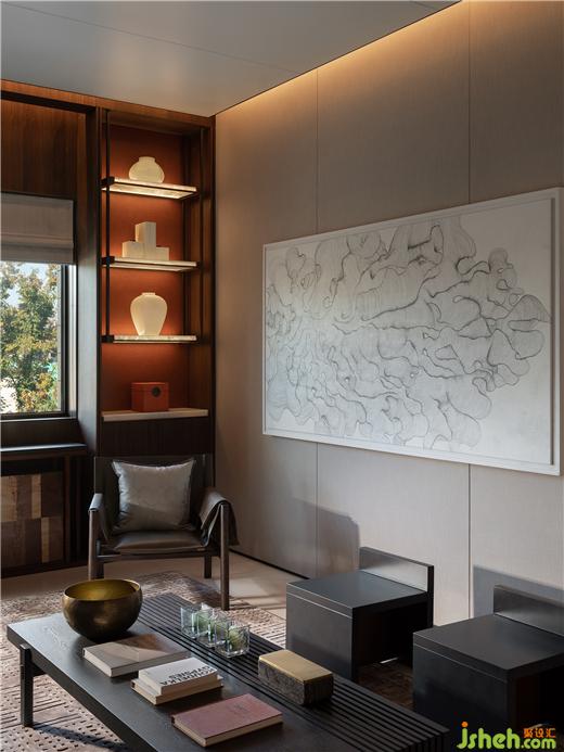 參照酒店式起居場(chǎng)景,于二樓構(gòu)造樞紐之地,套間居室環(huán)繞。常州天安別墅設(shè)計(jì)提取頗具東方意象的屏風(fēng)形態(tài),對(duì)沙發(fā)呈包裹姿態(tài),并以此開啟圍合布局。內(nèi)斂規(guī)整的低調(diào)秩序亦進(jìn)一步描摹酒店氣韻,透過陣列式陳設(shè)、高飽和色點(diǎn)綴,強(qiáng)化典雅之境。在深淺對(duì)比、錯(cuò)落有致中,儀式感與隨性氣息兼具。