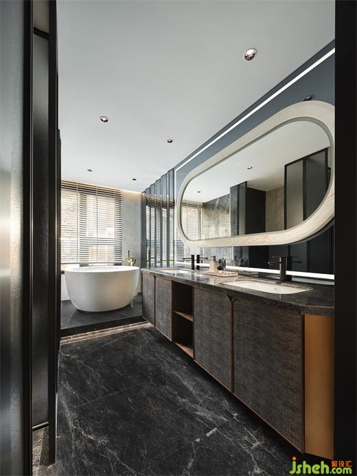 樣板間設(shè)計(jì)師還引入高端酒店式衛(wèi)浴體驗(yàn),于主衛(wèi)對(duì)各功能分區(qū)及尺度細(xì)致推敲,力求實(shí)現(xiàn)周全的呵護(hù)?;⌒卧氐谋椴歼\(yùn)用注入恰到好處的平衡之美,剛?cè)峒鏉?jì)。沐浴之際,陽(yáng)光傾灑而入,無(wú)比治愈與放松。