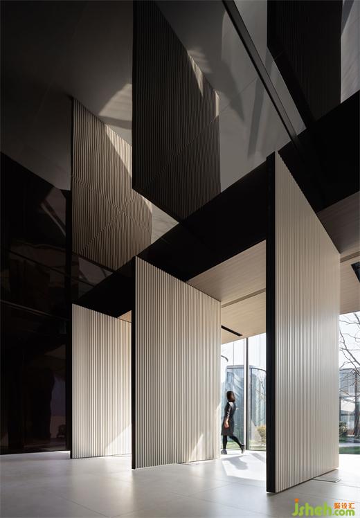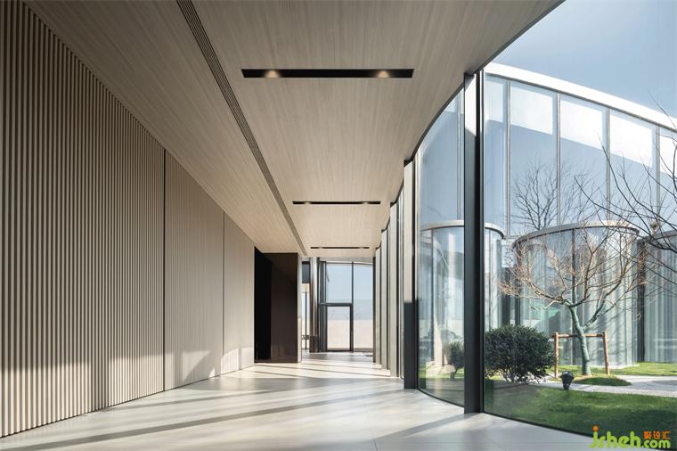上海嘉俊庭展示中心以線性的訪客參觀流線為出發(fā)點(diǎn),趣味性的連接處理令一切分中有合、合中顯分,既打破了空間固有的邊界感,又創(chuàng)造出與建筑形態(tài)相互統(tǒng)一的“環(huán)”,形神各具其美。