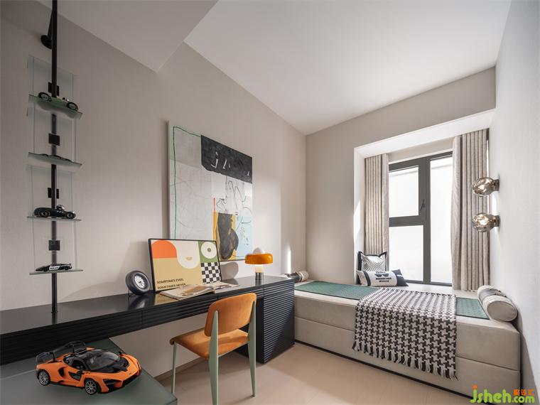 兒童活動(dòng)室力求實(shí)現(xiàn)尺寸的最優(yōu)化利用,集親子、玩樂(lè)、學(xué)習(xí)等多場(chǎng)域于此,并因勢(shì)結(jié)合飄窗,以蔓延相連的軟包墊,鋪展整體利落之貌。汽車主題的陳設(shè)充盈室內(nèi),讓熱血少年的夢(mèng)想隨風(fēng)馳騁。