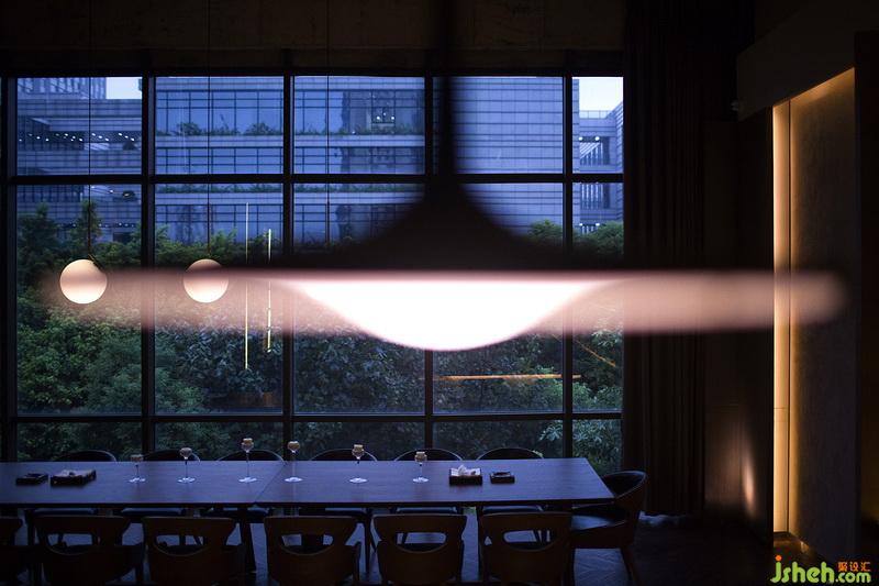 為了襯托建筑本身樸素感以及大落地玻璃窗所引入的自然景觀,我們室內設計師運用混凝土造地面呼應原有的建筑樓板,定制混硬土倒模而成的玻璃纖維材質掛墻。室內設計師大量運用玻璃作為間隔,盡可能平衡室外與室內的感受關系。