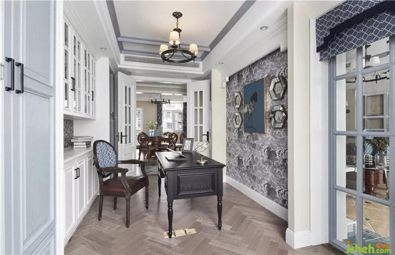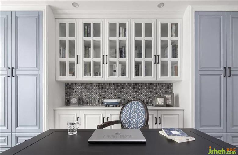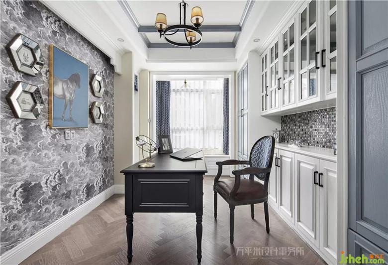南向景觀陽臺的部分并入書房內(nèi),以一組儲物邊柜分隔原有空間,制作儲物式榻榻米地臺,一米五的寬敞地臺尺寸令書房也可輕松兼任客臥。紛繁云紋圖案裝飾端景一側(cè),如斯變幻。裝修公司