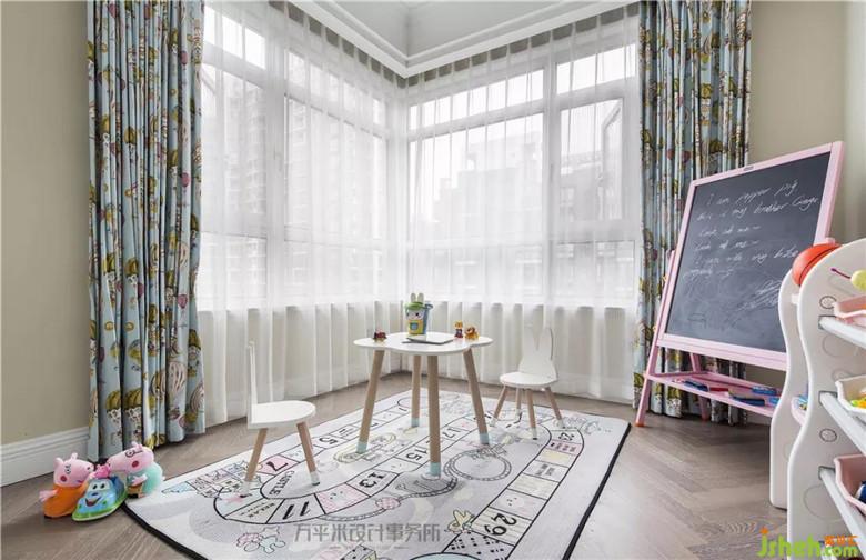 業(yè)主的寶寶年齡尚小,暫時將兒童房作為活動室使用,墻面預留開關插座,隨著寶寶年齡增長可購入標準尺寸臥室家具放入。
