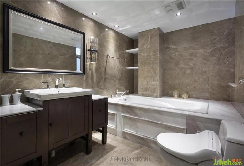 因外推隔墻而變得空間寬敞的主衛(wèi),光潔大理石鋪貼,并因地制宜利用原承重墻體間隙設(shè)置開放式層板置物。高分子板與豆膽燈的結(jié)合令美觀與實(shí)用并存。