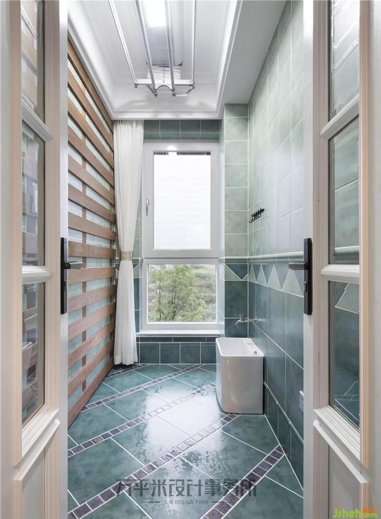 走廊盡頭處的小房間作為花房使用,別出心裁將防腐木與仿古磚交錯(cuò)鋪貼后,再安裝多根防腐木條,為掛墻安放花盆提供便利。清玻對(duì)開(kāi)門設(shè)計(jì),令房間成為走廊區(qū)域自然光線入口。