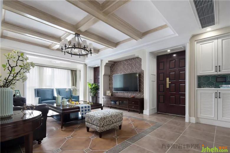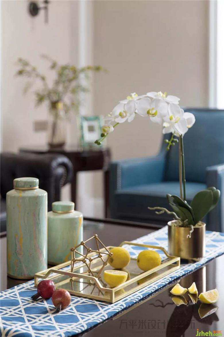 藍(lán)綠色調(diào)輕柔呼應(yīng)于大地色系中,溫婉卻自然生動(dòng),令空間增添古典優(yōu)雅韻味。