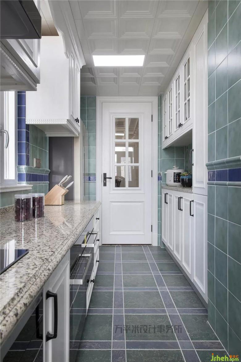 面積擴(kuò)大后的廚房有雙采光窗,明亮通透。借用生活陽(yáng)臺(tái)面積后,將對(duì)開(kāi)門(mén)冰箱輕松嵌入。