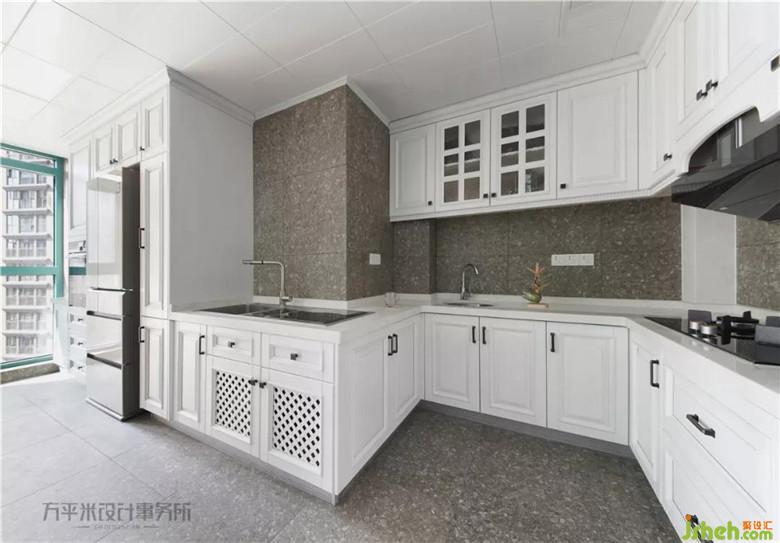 廚房面積擴(kuò)大后采光也有所提升,并采用訂制高柜,將冰箱,蒸烤箱等廚電逐一嵌入,令整體操作臺(tái)面保持清爽。