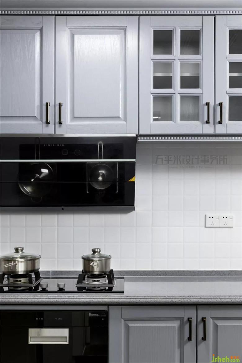 將隔墻砌出凹槽借用后方空間,使狹長(zhǎng)廚房有了容納冰箱的合理區(qū)間。冰箱嵌入后不影響原櫥柜空間及通行動(dòng)線。滿墻地柜及吊柜得以延長(zhǎng),提升收納功能也為洗切炒盛留出足夠操作尺寸。定制灰色櫥柜及同色臺(tái)面,搭配白色光潔小磚鋪貼。有清爽的高級(jí)感。