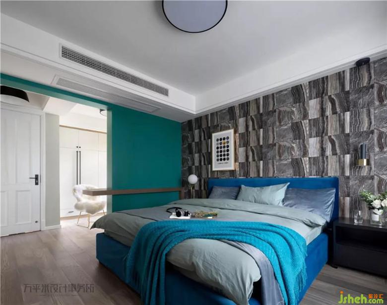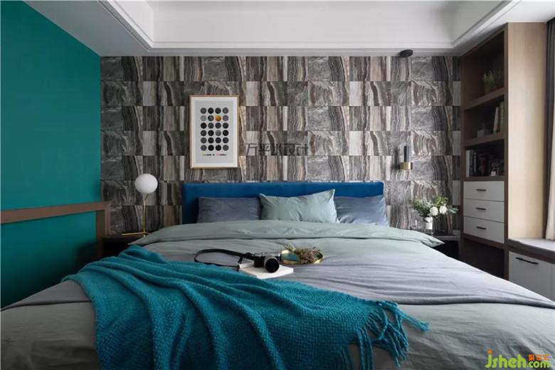 灰調(diào)藍(lán)綠色系純色布藝的使用,為空間帶來(lái)安靜典雅的氣質(zhì)。臺(tái)燈與吊燈的組合,及單側(cè)裝飾畫(huà)作,不對(duì)稱中取得平衡的美感。少許的橙黃仍是隨處可呼應(yīng)的亮點(diǎn)。沒(méi)有飄窗,那我們做一個(gè):在主臥窗臺(tái)制作出儲(chǔ)物及展示功能的飄窗,雙側(cè)原木色柜體的圍合,在松軟靠墊上享受午后閱讀時(shí)光,盡情沐浴南側(cè)溫暖陽(yáng)光。