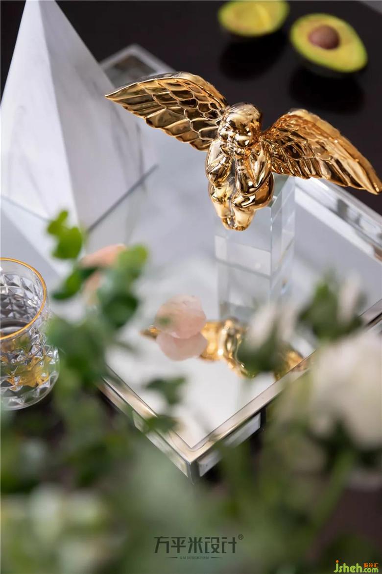 奶咖的溫柔墻色融入黑白灰的雋永低調(diào)中,統(tǒng)一的低彩度空間中,因復古墨綠與纖細沙金的點綴,璀璨燈光傾瀉之下,渲染神秘而優(yōu)雅的獨特魅力。黑白幾何的裝飾畫,應對千鳥紋的古典圖案,賦予經(jīng)典紋理現(xiàn)代之美。