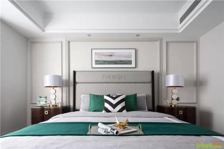 主臥:靈活機(jī)動(dòng)的套間設(shè)置,保留臥室的獨(dú)立房門,私密空間得以保證。簡(jiǎn)約線框墻面,美式氛圍輕松圍繞。柔和的多種輔助光源,營(yíng)造更多燈光氛圍。精心選配的床品契合全屋用色。